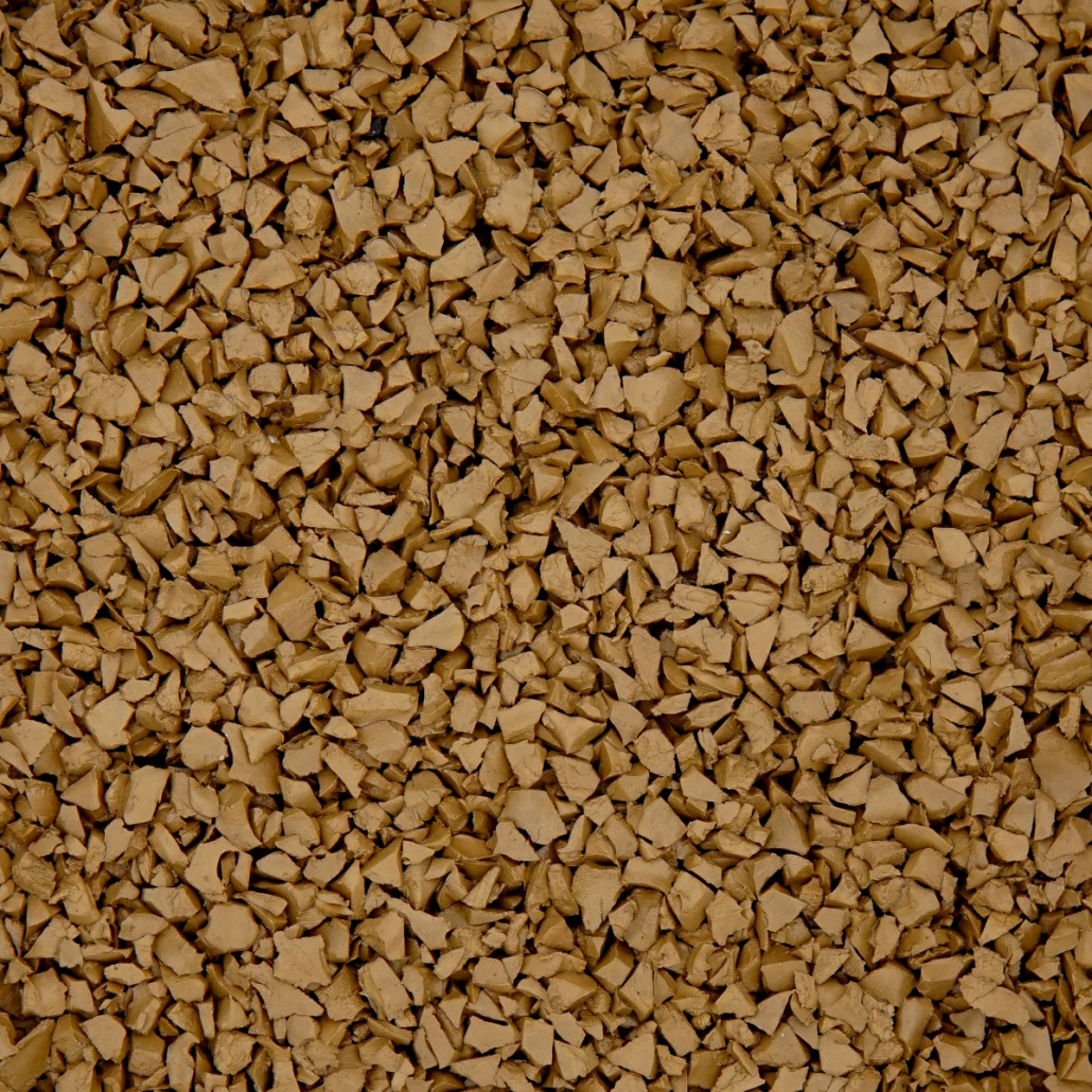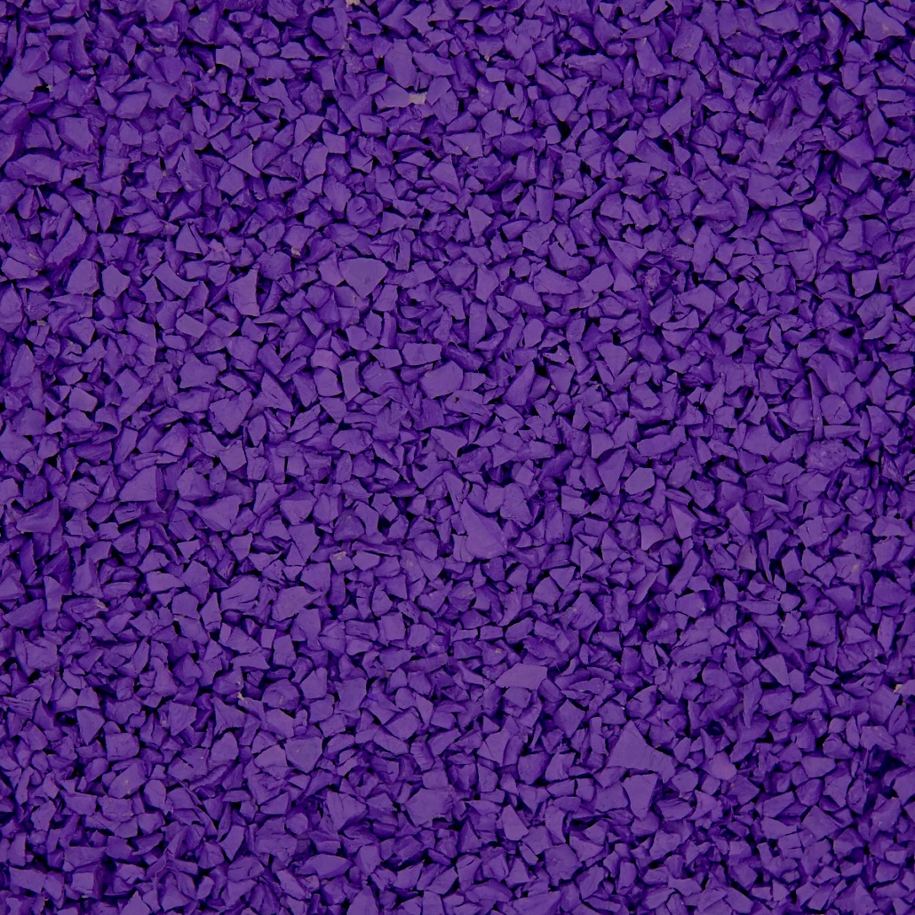 Pure vulcanized EPDM rubber chips ranging in size from 1mm to 4mm maximum dimension. EPDM rubber shall be UV stable. One bag covers approximately 30-40 square feet.